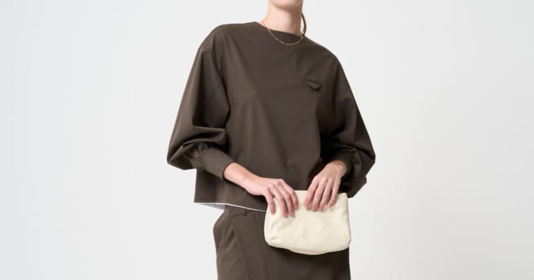 首周りに施したギャザーは、どこかクラシカルでモダンな雰囲気に。