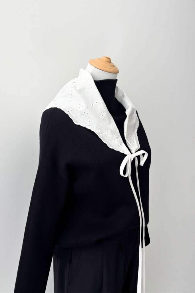 このコットンレーススカーフは、決して春夏のシーズンだけでは終わりません。 初夏には爽やかなアクセントとして。そして季節が巡り、冷ややかな空気が漂う秋冬には、ニットの襟元から幾何学模様を覗かせたり、ジャケットに添えてマスキュリンな装いに洗練を加えたり。