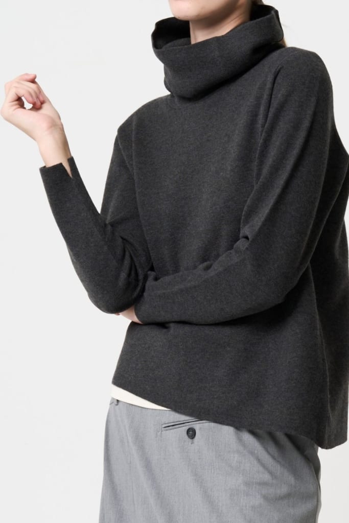 冬の定番として欠かせないハイネックニットは、一枚で季節感を表現できるうえに、着こなしに奥行きをつくる万能アイテム。フィット感のあるタイプなら首元に優しく沿い、顔まわりをすっきり見せてくれる効果があり、ゆったりしたリブやオフタートルなら柔らかく包み込むようなニュアンスが生まれます。