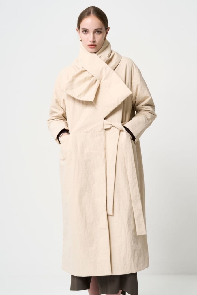このTHINDOWNを使用することで、縫い目が少なくシームレスなダウンコートに。軽いながらも暖かさがあり、シワになりづらくかさばらないのも嬉しいポイントです。
