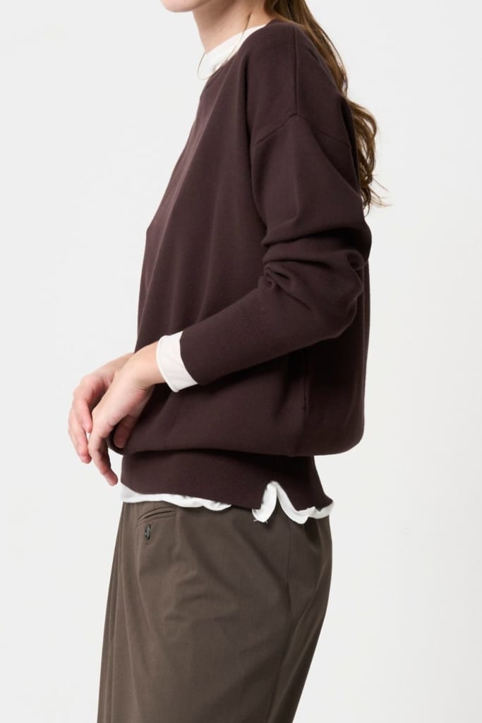 ハイネックの下にシアーを重ねるスタイルは、防寒はもちろん、ニュアンスカラーがポイントに。襟元や袖口から、数センチだけシアーアイテムを覗かせることで、シアー素材の軽さとニットの素材の重さが絶妙なバランスを演出してくれます。ニット以外にも、スウェットとの組み合わせも抜群です。