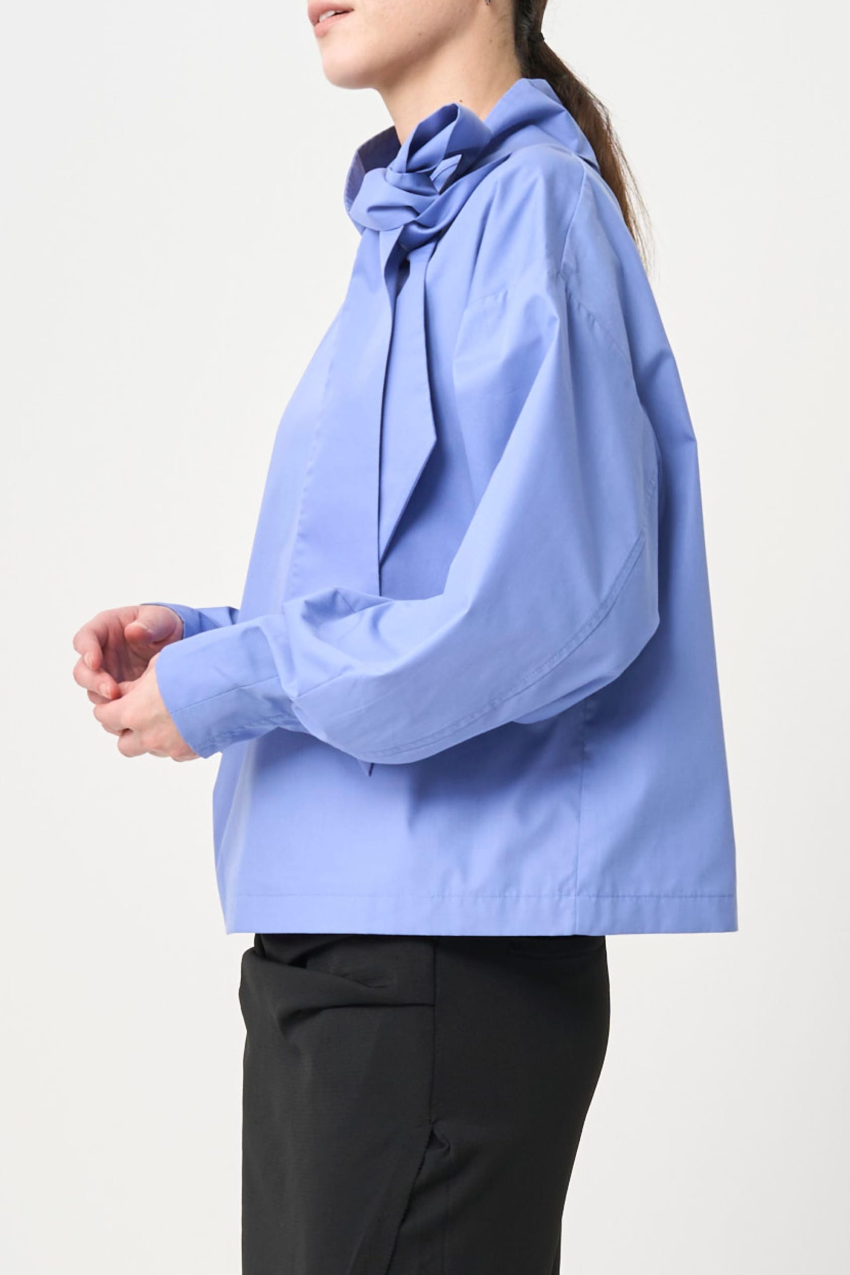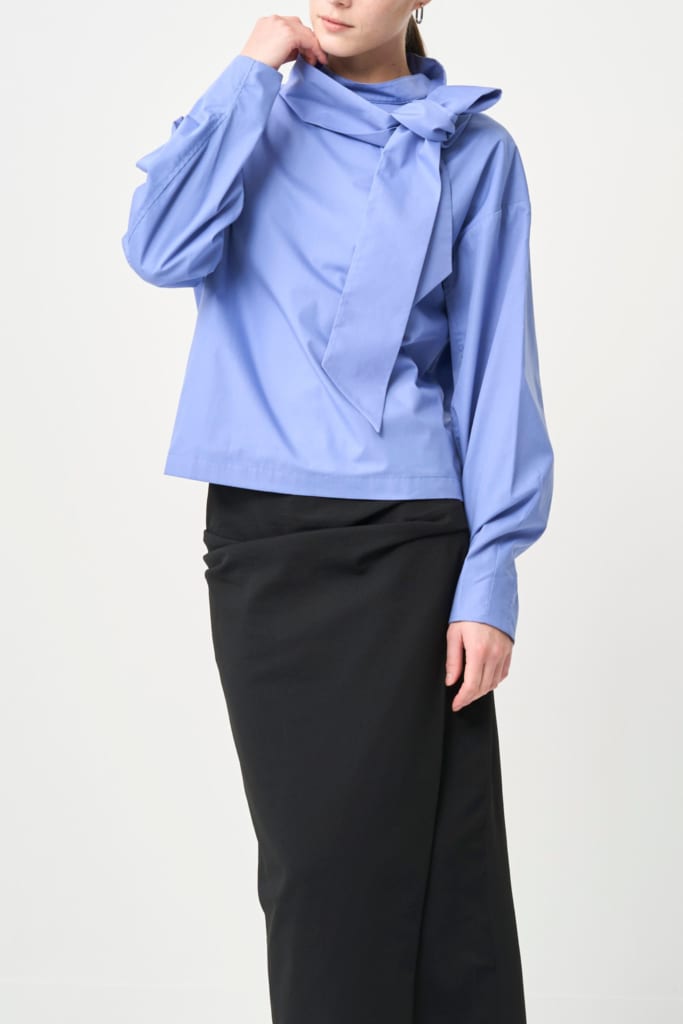 • アイロン要らずのハリ感:しわになりづらく、程よい光沢とハリがある生地を採用。さらに身頃とボウタイは生地を二重にしているので、1日経った夕方もパリッとした状態がキープできます。お洗濯でもシワになりづらいため忙しい朝も手に取りやすく、一日中美しい立体的なシルエットをキープします。