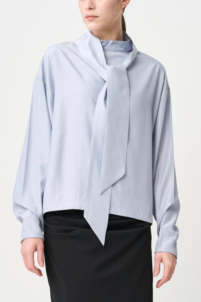 コートを開けて、インナーに白やアイボリー、淡いブルーのアイテムを合わせると、春らしさがグッと加わって顔周りの印象が明るくなります。